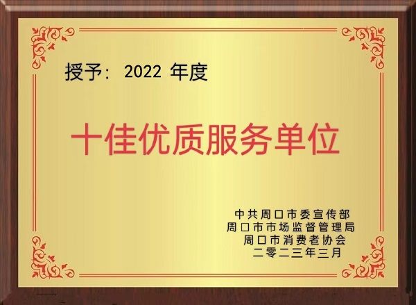 2023年是新《消法》實施九周年。為了更好宣傳2022年中消協(xié)“3.15”活動年主題“提振消費信心”。中共周口市委宣傳部、周口市市場監(jiān)督管理局和周口市消費者協(xié)會研究,對2022年度“十佳誠信單位”、“十佳優(yōu)質(zhì)服務(wù)單位”進(jìn)行表彰。