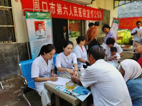8月29日,周口市第六人民醫(yī)院老年病科、全科病區(qū)、康復(fù)醫(yī)學(xué)科、家庭病床科分別抽調(diào)經(jīng)驗豐富、專業(yè)技術(shù)過硬的醫(yī)護人員組成“醫(yī)養(yǎng)康”專家義診團隊,攜帶心電圖儀、超聲波儀等設(shè)備來到轄區(qū)艾營村,于鄧穎麗一體化村衛(wèi)生室設(shè)立義診點,為村里的老人進行免費醫(yī)療服務(wù)。