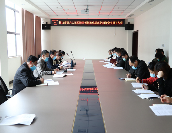 3月31日下午,周口市第六人民醫(yī)院召開學習會議,傳達學習市直機關工委關于創(chuàng)建機關標準化規(guī)范化標桿黨支部的通知的相關文件精神,黨支部書記岳新建主持會議,院領導班子、全體黨員、科主任、職代表共計70余人參加。