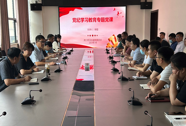為深入學習貫徹《中國共產(chǎn)黨紀律處分條例》,扎實推進黨紀學習教育,7月2日,周口市衛(wèi)生健康委員會黨組成員、副主任楊超到我院以黨紀學習教育為主題講授了一堂專題黨課。會議由黨總支書記岳新建主持,院班子成員、各科室主任、各黨支部書記等共計60余人參加了聽課學習。